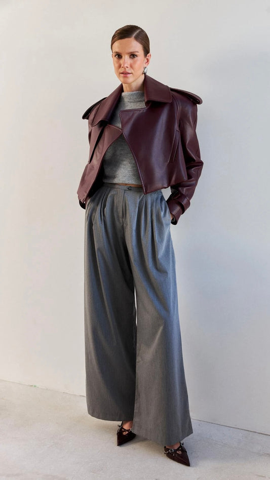 Bordeaux Cropped Leather Jacket
