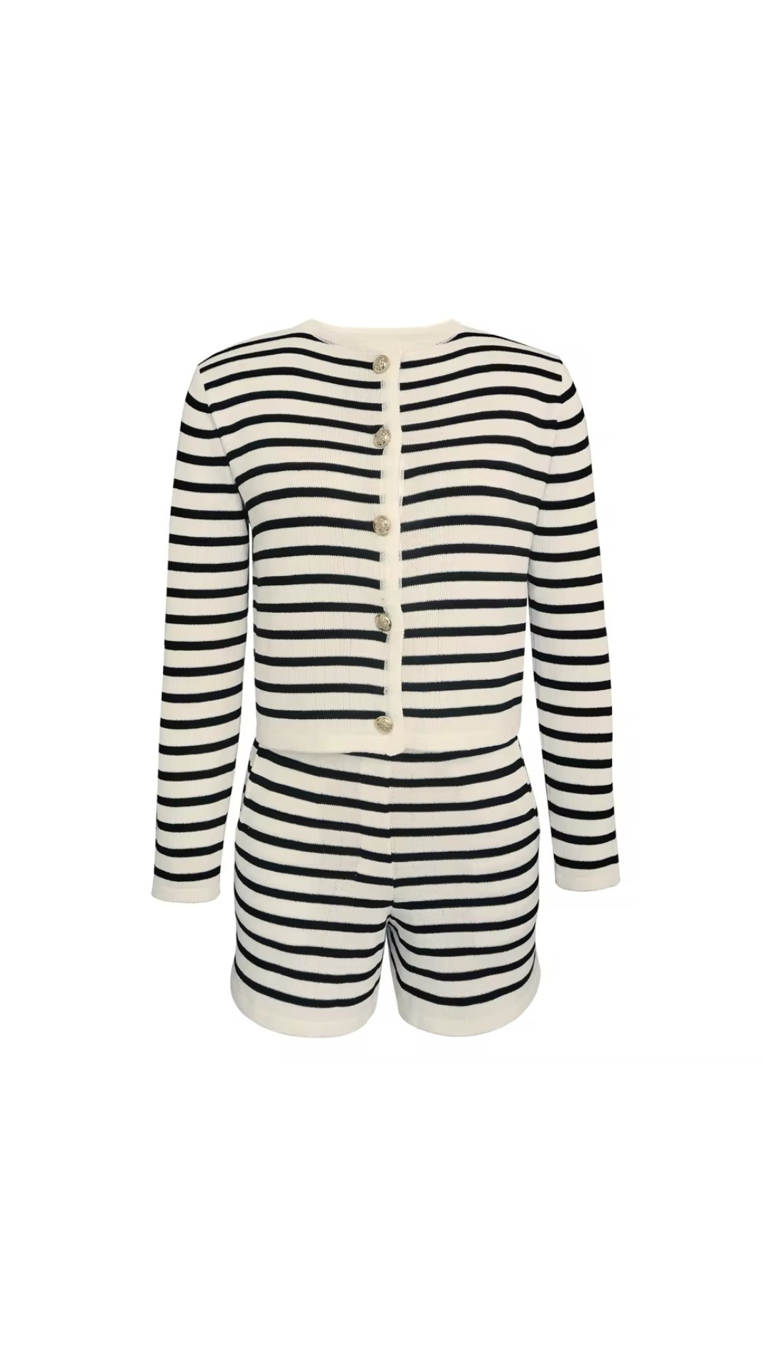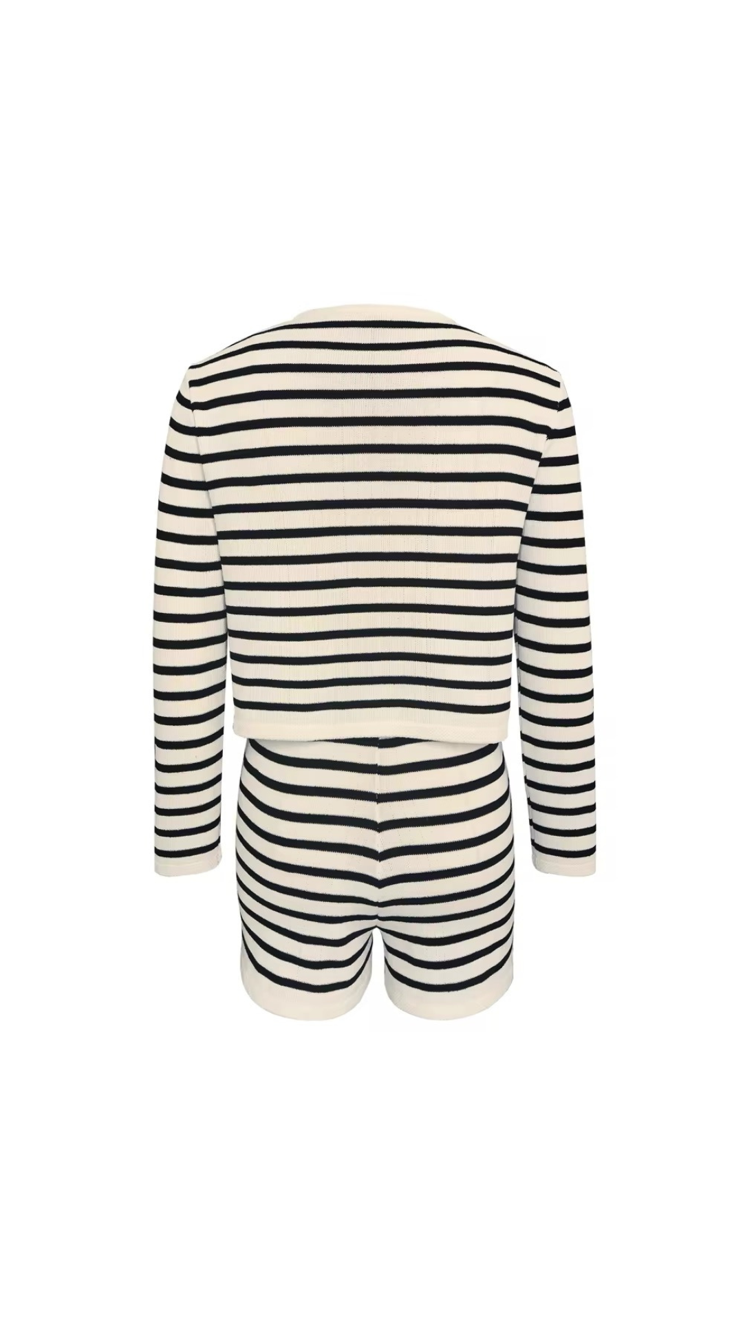 Unsere Zebra-Strickjacke aus hochwertigem Strickmaterial besticht durch ihr auffälliges Streifenmuster und verleiht jedem Outfit das gewisse Etwas. Kombiniert mit den passenden High-Waist-Shorts, sorgt sie für einen stilvollen und figurbetonten Look.