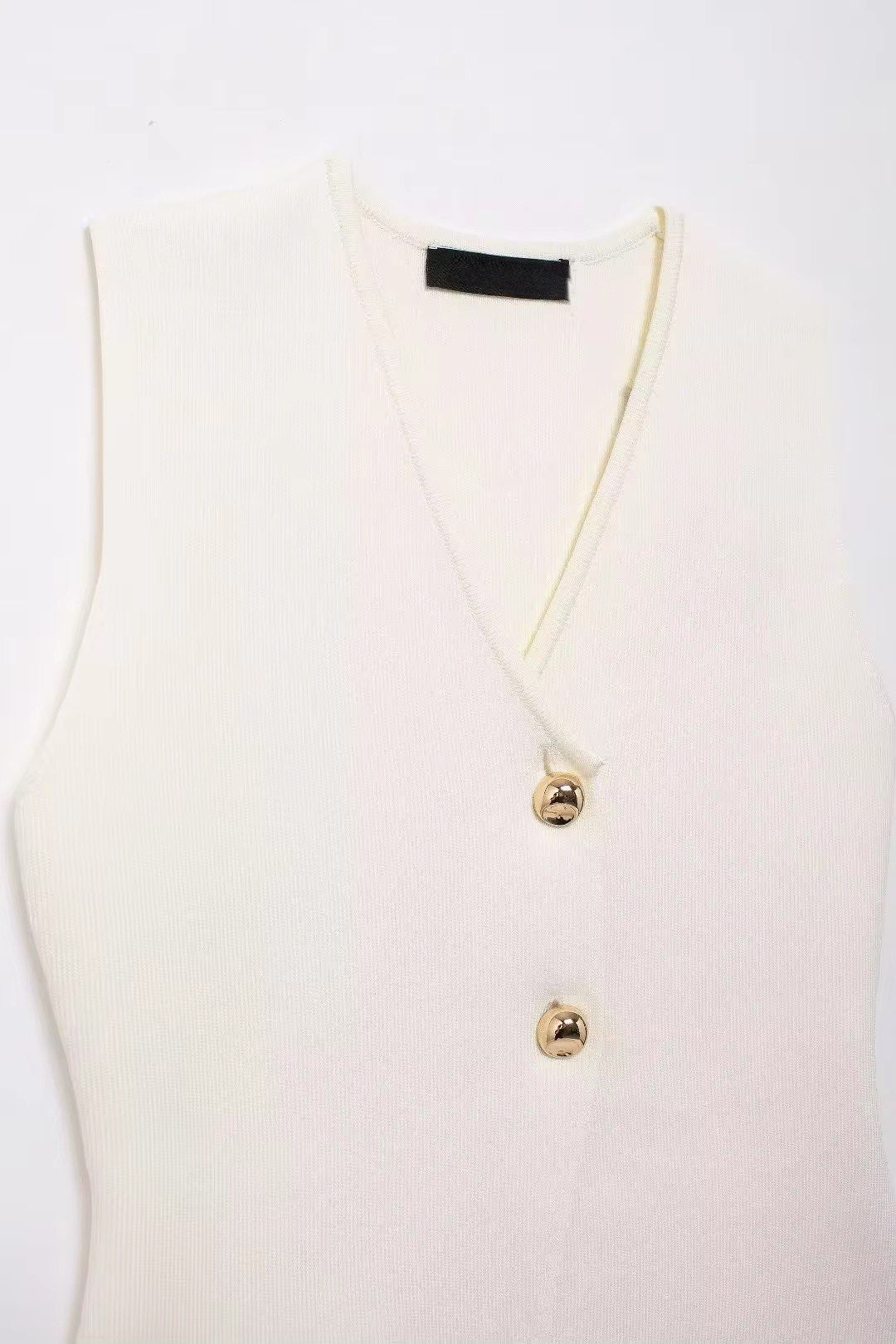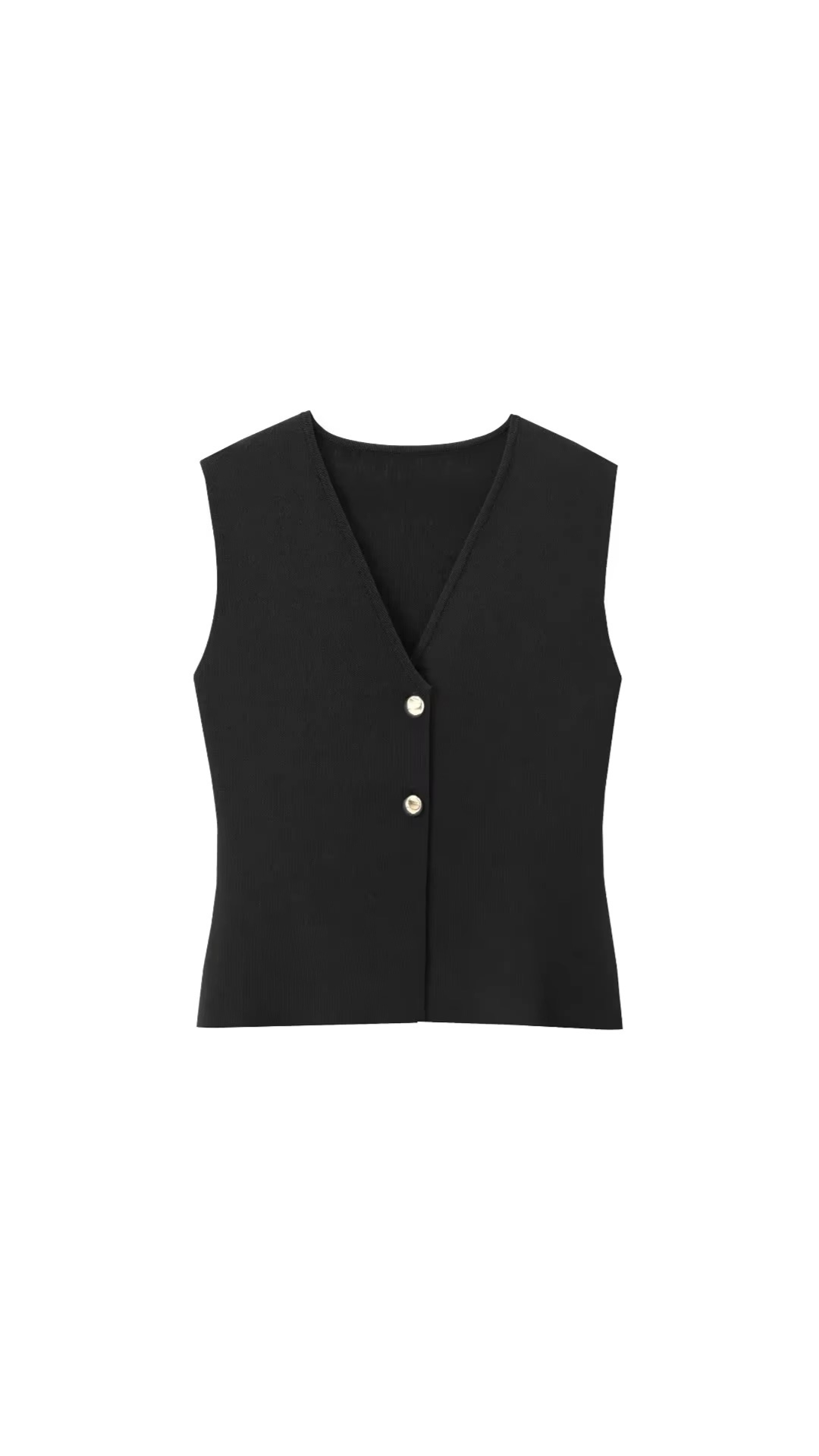 Ärmelloses Top im Westernstil mit V-Ausschnitt und goldfarbener Knopfleiste vorne. Vielseitig kombinierbar.